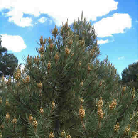 Pinyon Pine Tree Under Pollination (Pollen seen on many Branches)